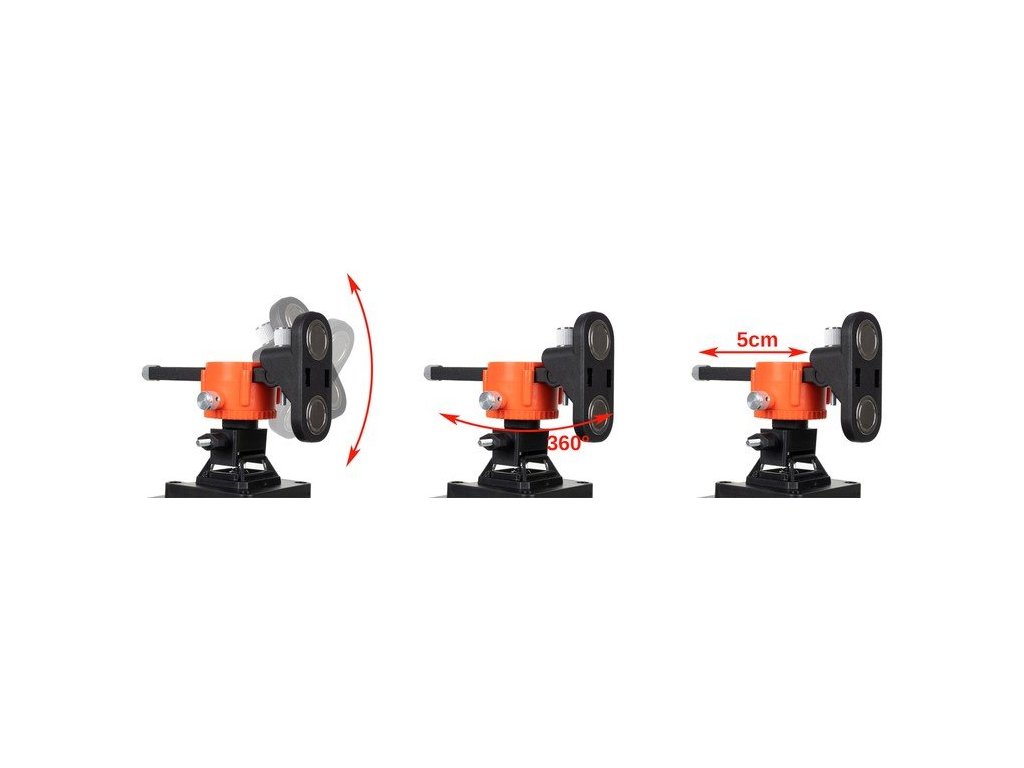 Sada obsahuje nástěnný držák. Na vybranou stěnu stačí přišroubovat kovovou desku a poté použít nastavitelný držák vybavený dvěma silnými magnety, které zajistí pevné spojení s dříve přišroubovanou deskou. To umožňuje bezproblémovou instalaci vodováhy v jakékoli výšce stěny.