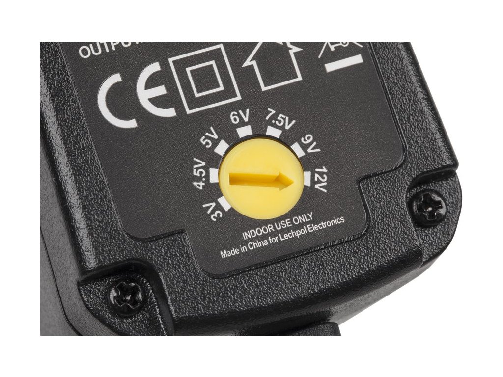 - Výstupní napětí: 3V, 4,5V, 5V, 6V, 7,5V, 9V, 12V DC