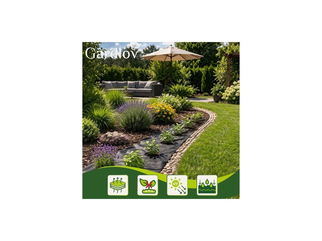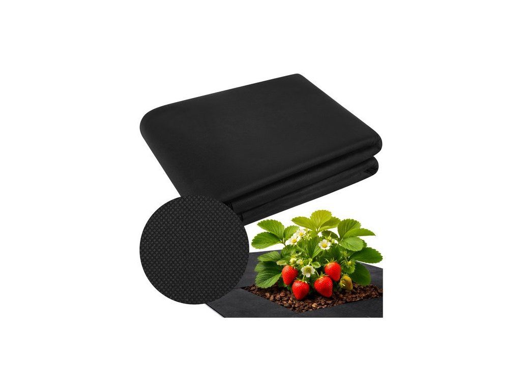 Černá protiplevelová agrotextilie pomáhá omezit růst plevele a zlepšuje půdní podmínky. Je odolná vůči povětrnostním podmínkám a vhodná pro vícesezónní použití. Udržuje půdní vlhkost, takže není třeba tak často zalévat.