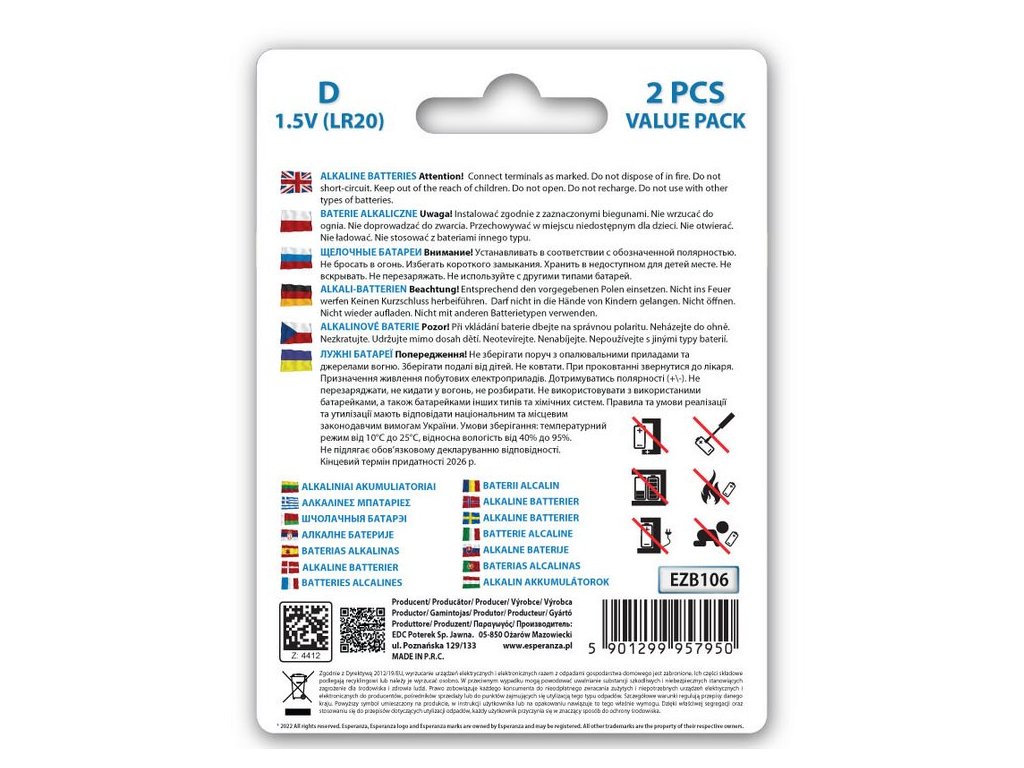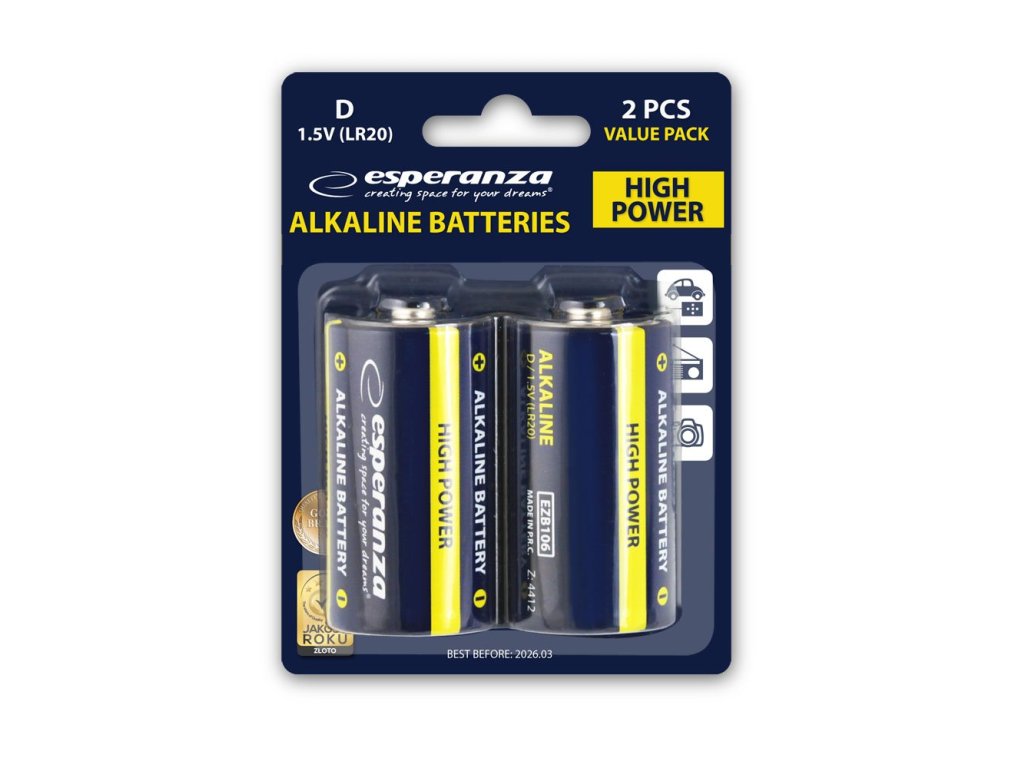 Alkalické baterie LR20 (D, velké mono) 2ks, Esperanza EZB106