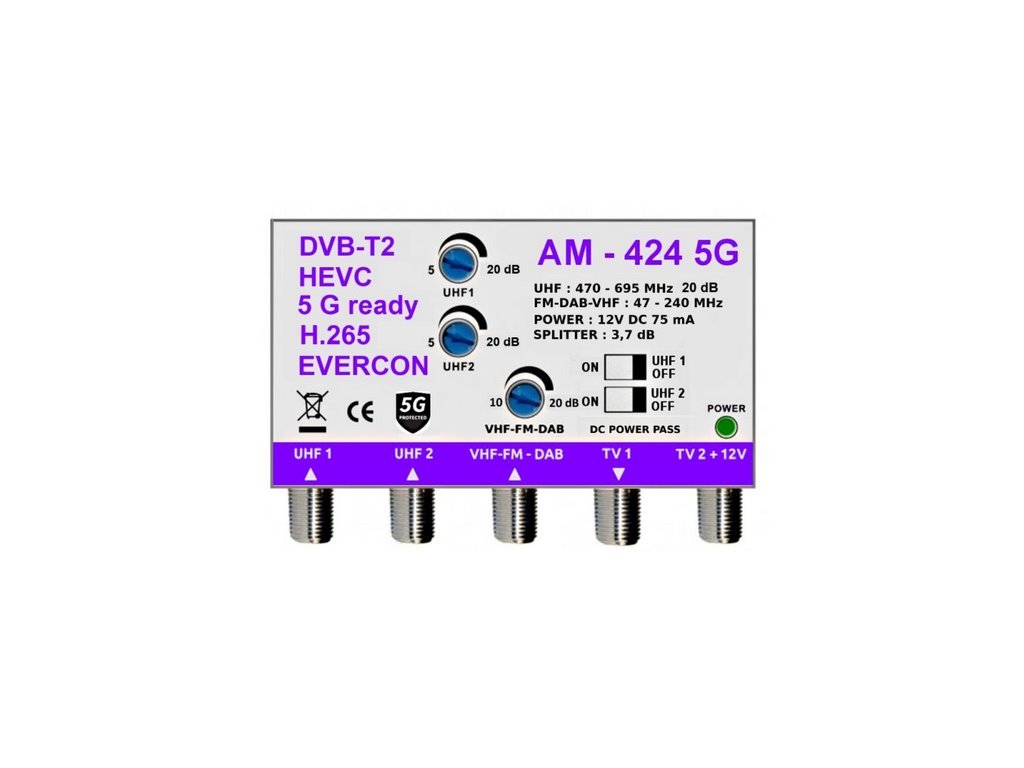 Anténní zesilovač EVERCON AM-424 5G 20dB 2TV