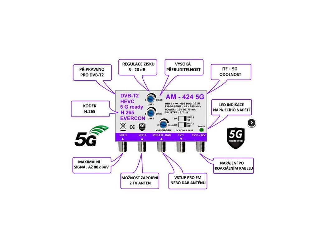 Vlastnosti anténního zesilovače EVERCON AM-424 5G