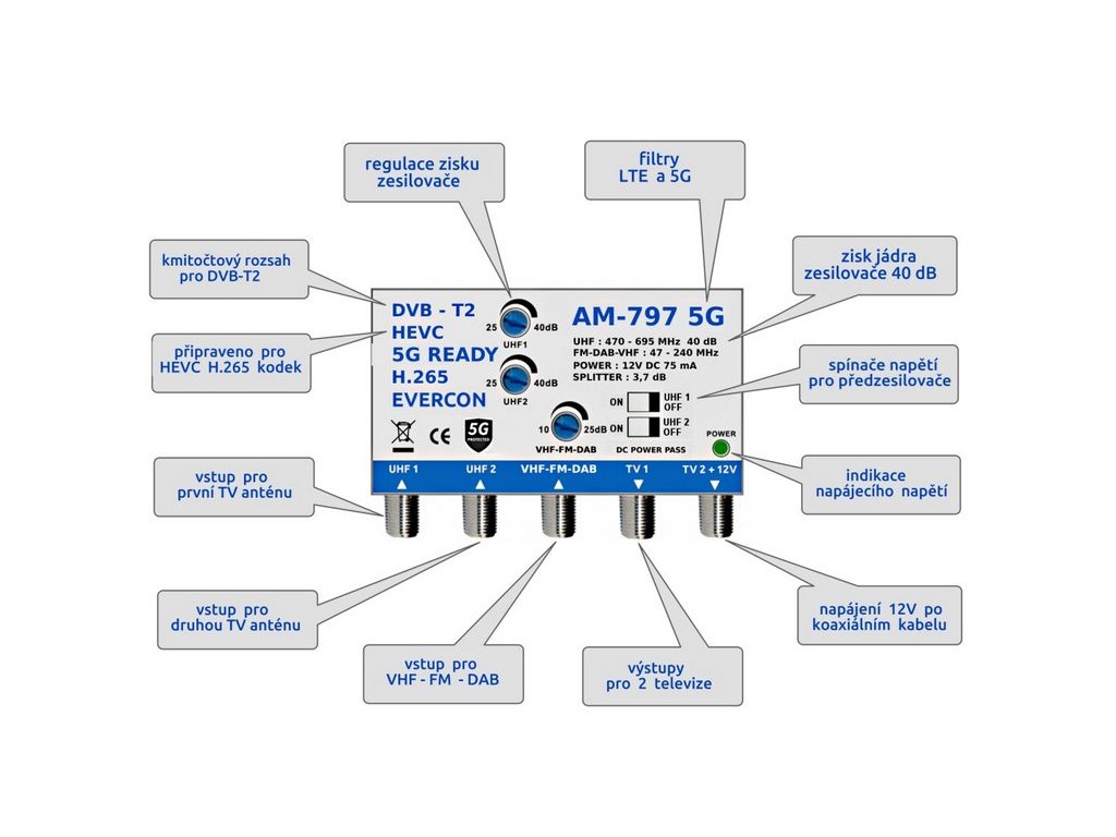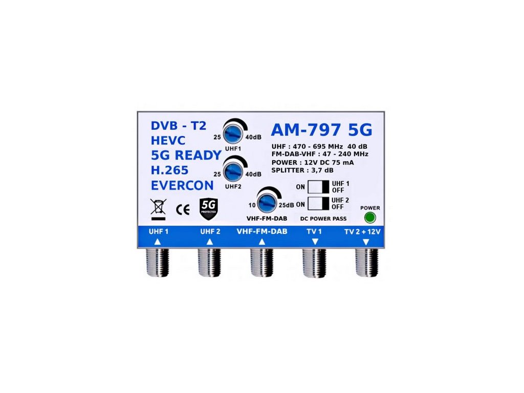 Anténní zesilovač EVERCON AM-797 5G 40dB 2TV