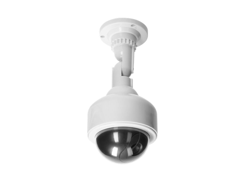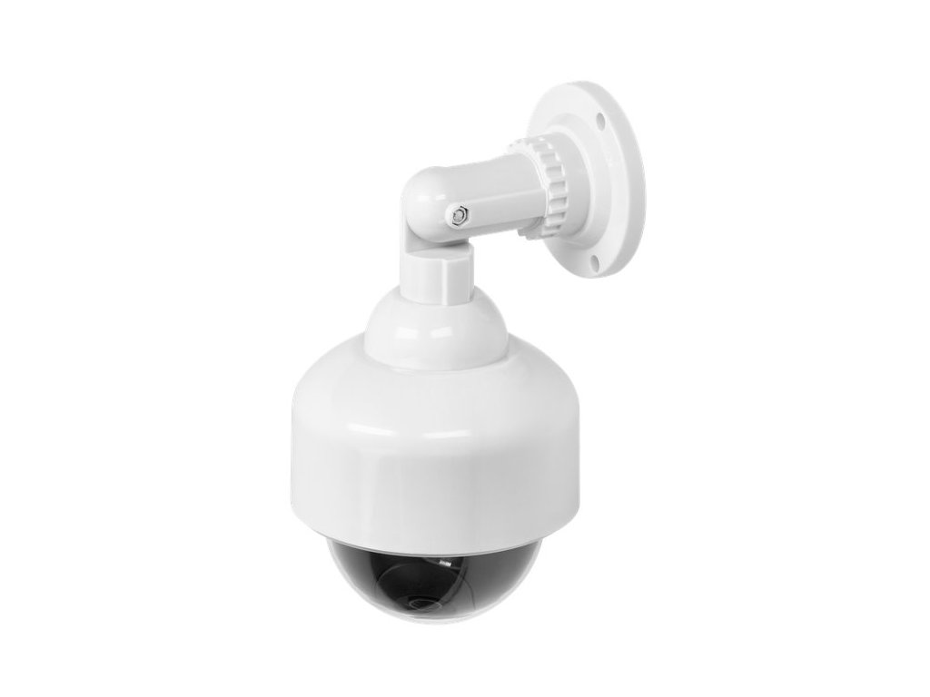 Atrapa kamery ORNO OR-AK-1212 DOME s blikající červenou diodou simuluje reálnou bezpečnostní kameru, což odrazuje potenciální narušitele. Ideální pro venkovní i vnitřní instalaci, zajišťuje efektivní dojem monitorování.