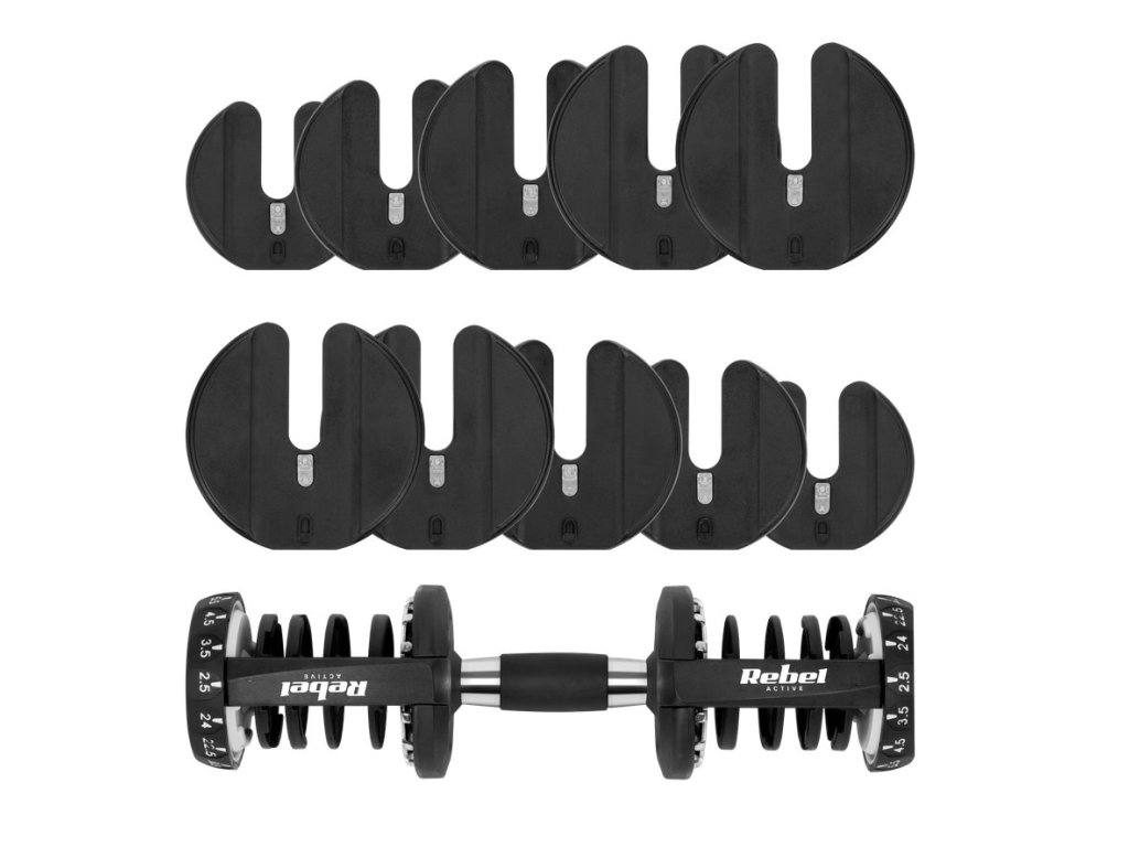 Automatická nastavitelná litinová činka 24 kg REBEL ACTIVE RBA-2303