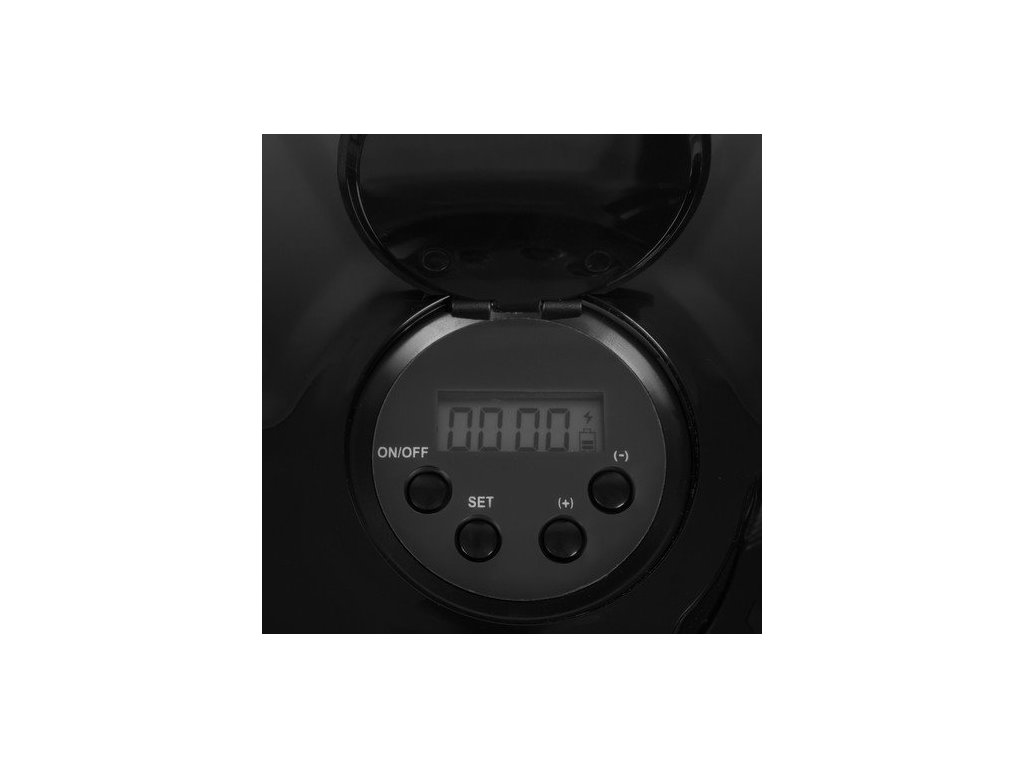 SPECIFIKACE - barva: černá; počet komor: 6; napájení: 3xAA; kapacita komory: 150ml; nastavení času: 1min-24h; rozměr: 30/30/6cm; hmotnost: 0,94 kg; hmotnost v balení: 1,181 kg.