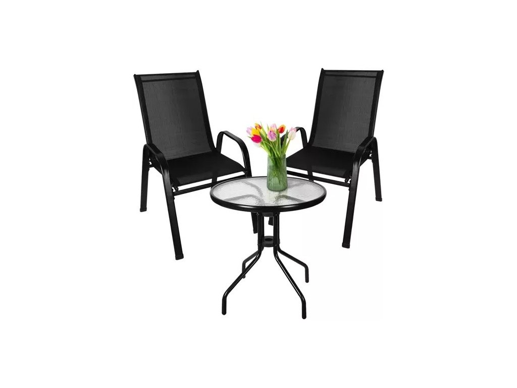 Balkonový set stůl + 2 židle černý Gardlov 23461