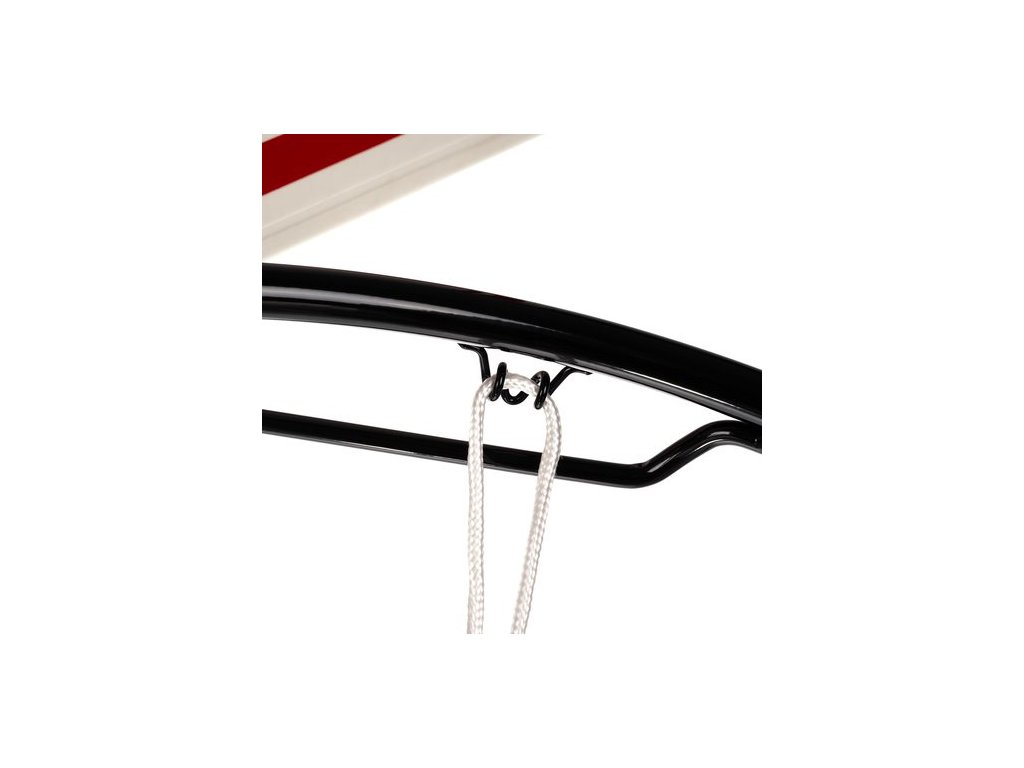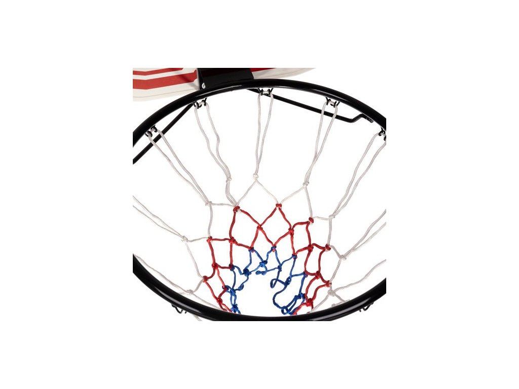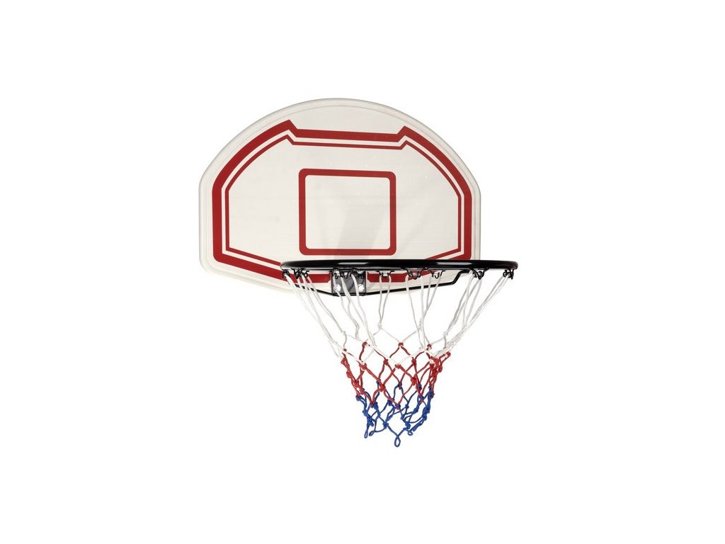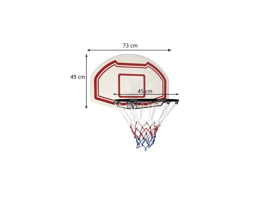 Na odrazové desce s klasickými červenými čarami je upevněn basketbalový koš s ocelovou obroučkou o průměru 45 cm lakovanou práškovým lakem a se síťkou odolnou proti povětrnostním vlivům.