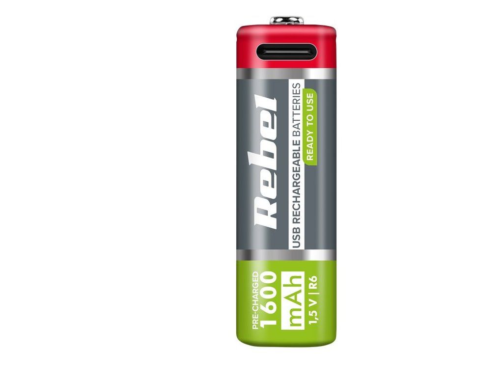 Baterie AA R6 nabíjecí 1,2V/1600mAh REBEL 2ks, blistr BAT2014 USB-C