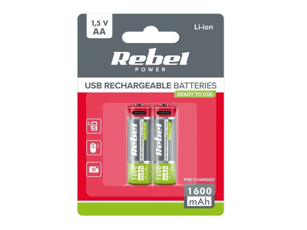 Baterie REBEL AA, 1600 mAh, Li-ion, 1,5 V, 2 ks/bl, patice typu C