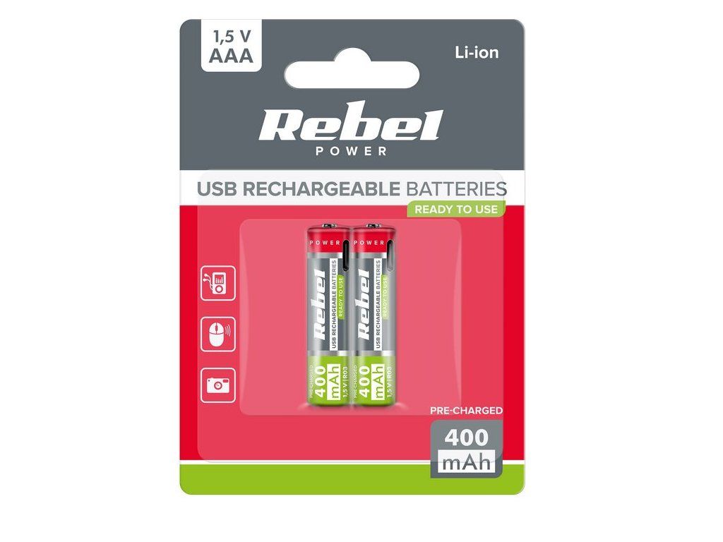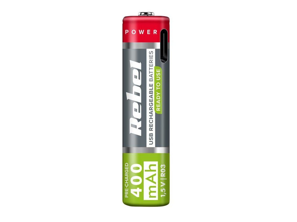 Baterie AAA R3 nabíjecí 1,5V/400mAh REBEL 2ks, blistr BAT2015 USB-C