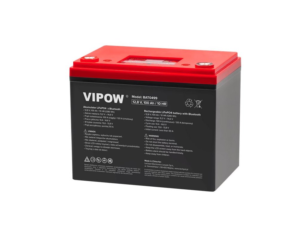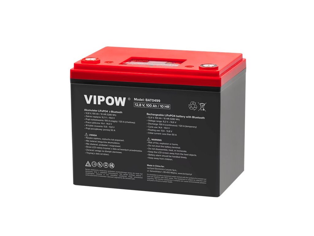 Baterie LiFePO4 12,8V 100Ah VIPOW BAT0499 Bluetooth