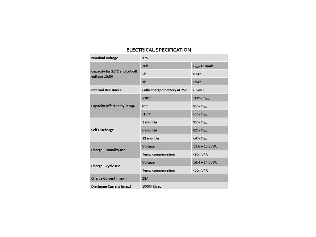 Vlastnosti Baterie olověné 12V / 100Ah GLPG 100-12 VRLA gelový akumulátor