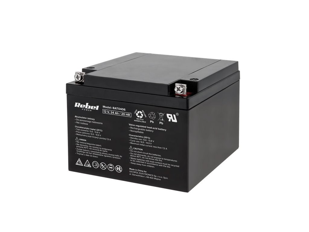 Baterie olověná 12V / 24Ah REBEL BAT0406 gelový akumulátor