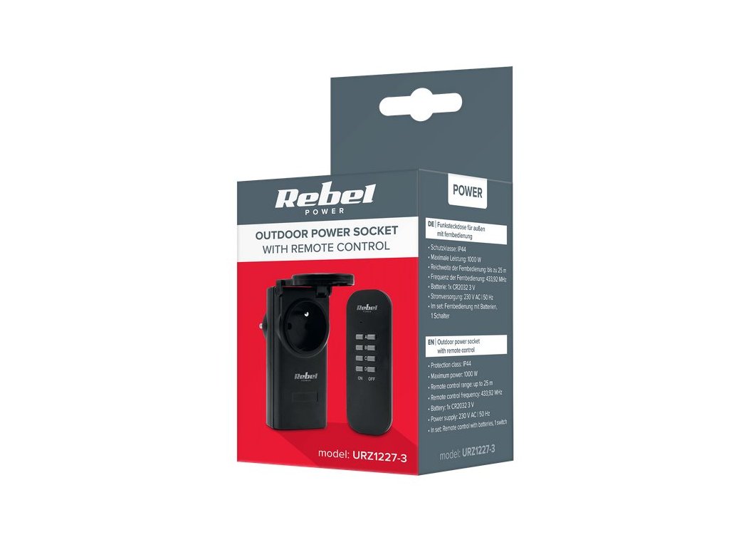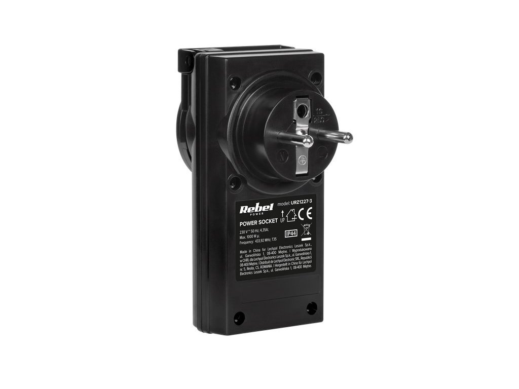 Bezdrátová zásuvka REBEL URZ1227-3 1+1, IP44 venkovní, černá