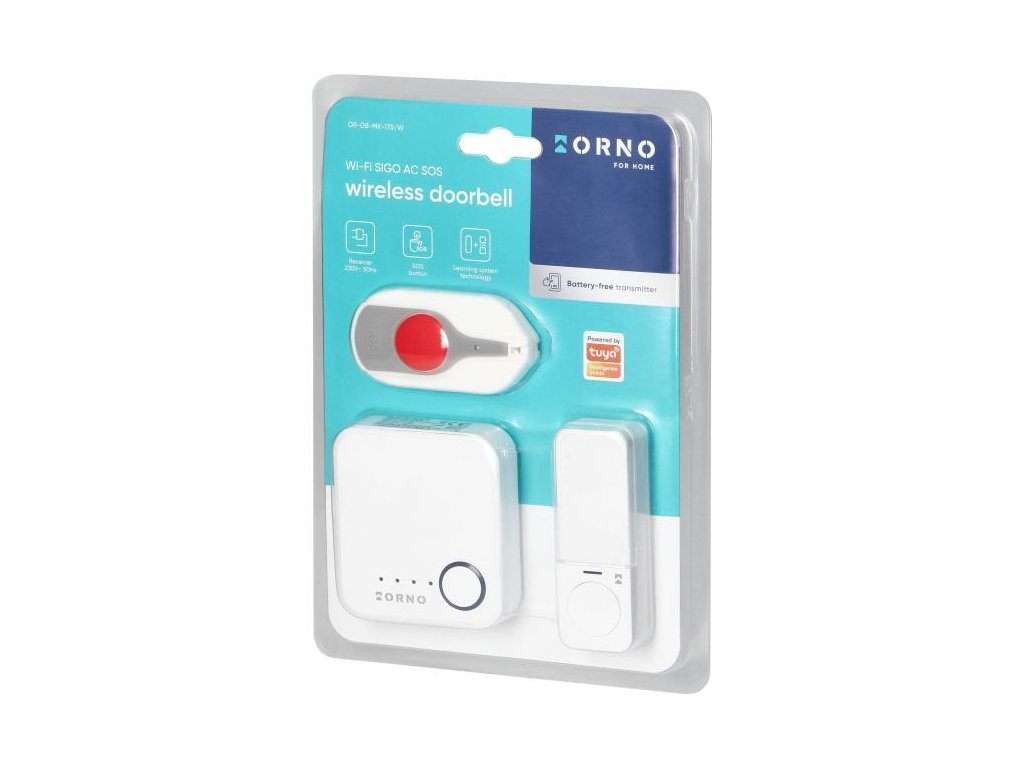 Bezdrátový zvonek OR-DB-MK-175/W s SOS tlačítkem, Tuya, dosah až 200m, bílá
