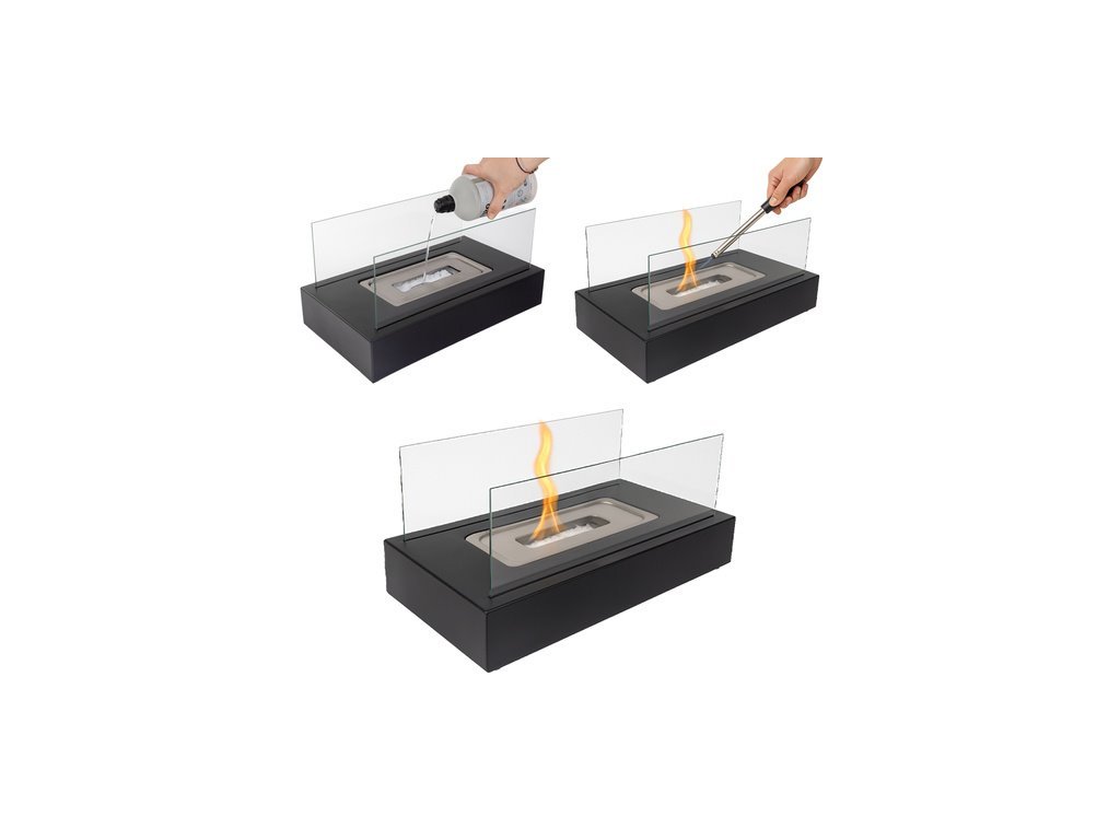 Volně stojící bioetanolový krb pro použití v domácnosti a na terase, bez kouře a poháněný bioetanolovým palivem.