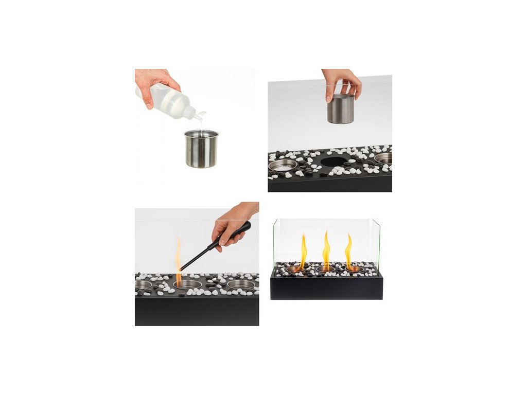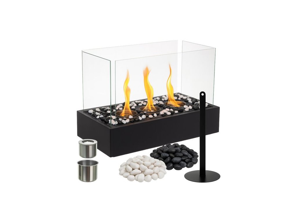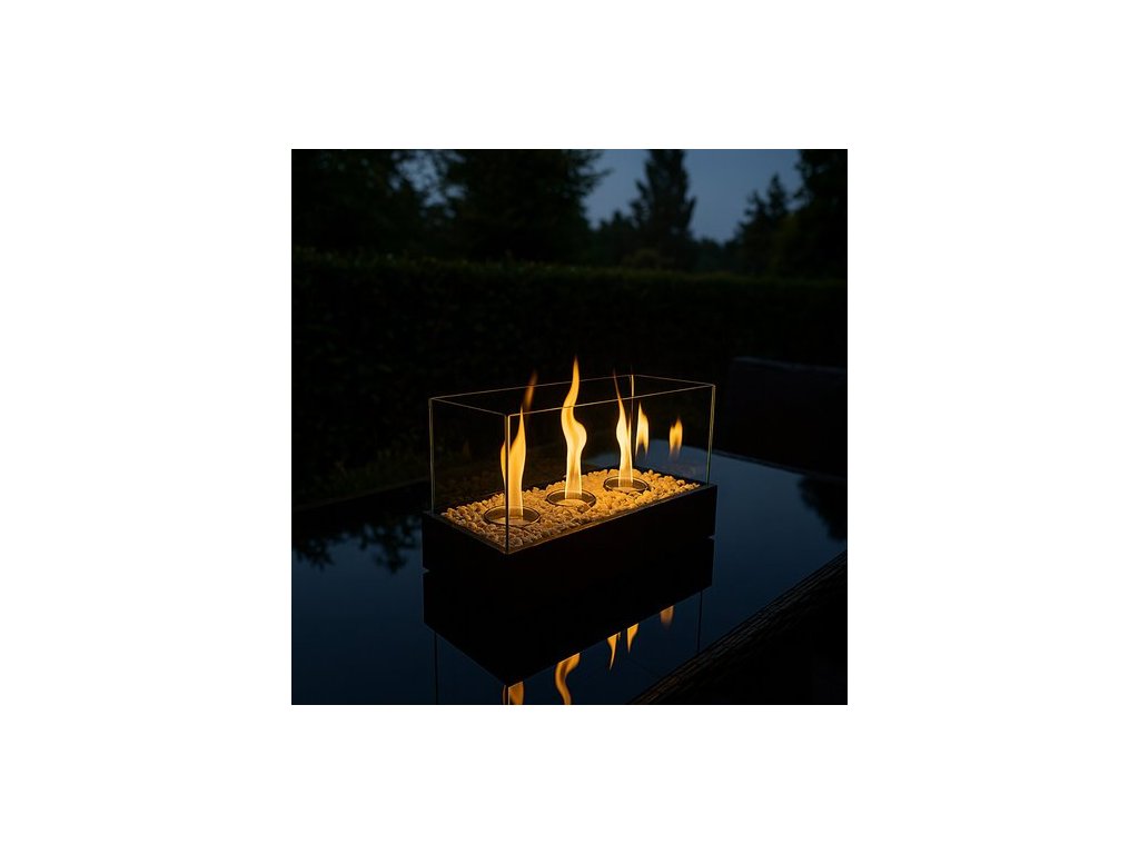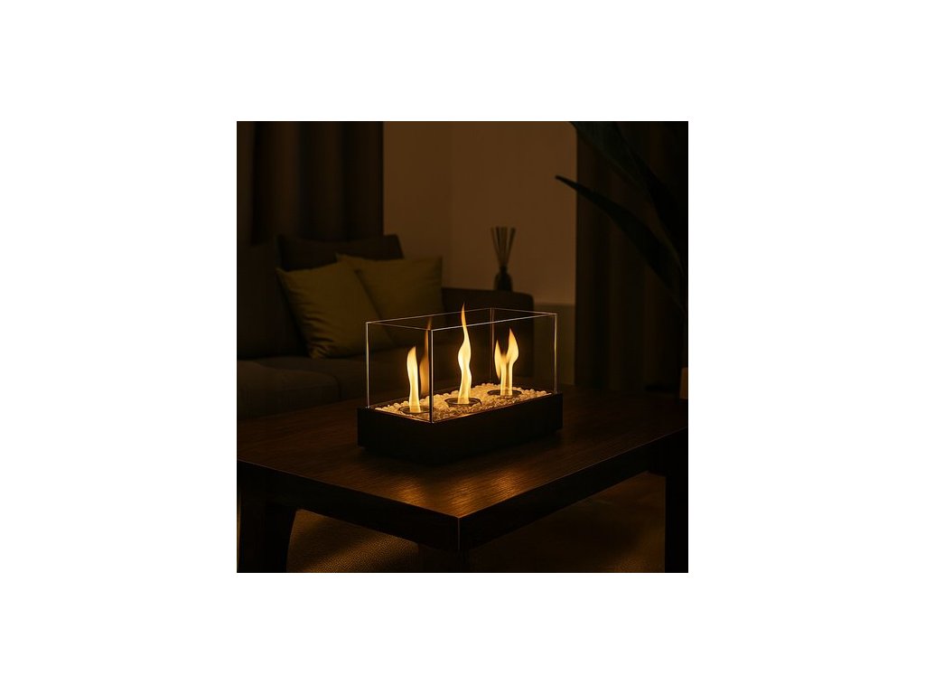 Volně stojící bioetanolový krb pro dům a terasu, bezdýmný, bioetanolové palivo, bioetanolový krb + oblázky KAMINER! Bezpečný plamen pro váš domov – biokrb má čtyři skleněné stěny, které zajišťují stabilitu ohně a ochranu před náhodným kontaktem.