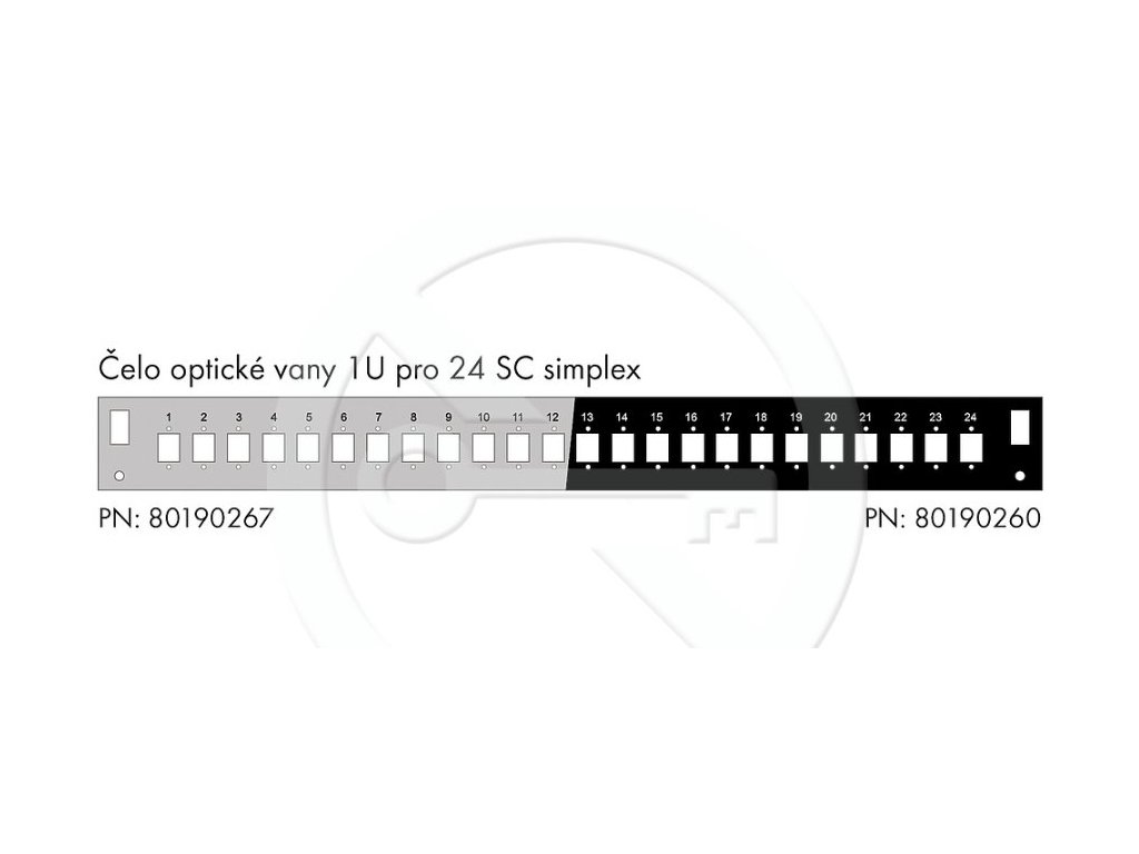 Vlastnosti produktu Čelo optické vany 1U pro 24SC simplex/LC duplex/E2000 BK