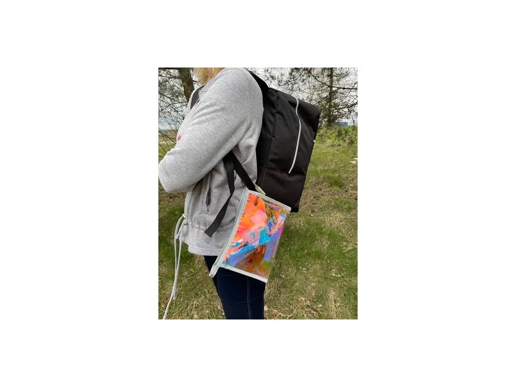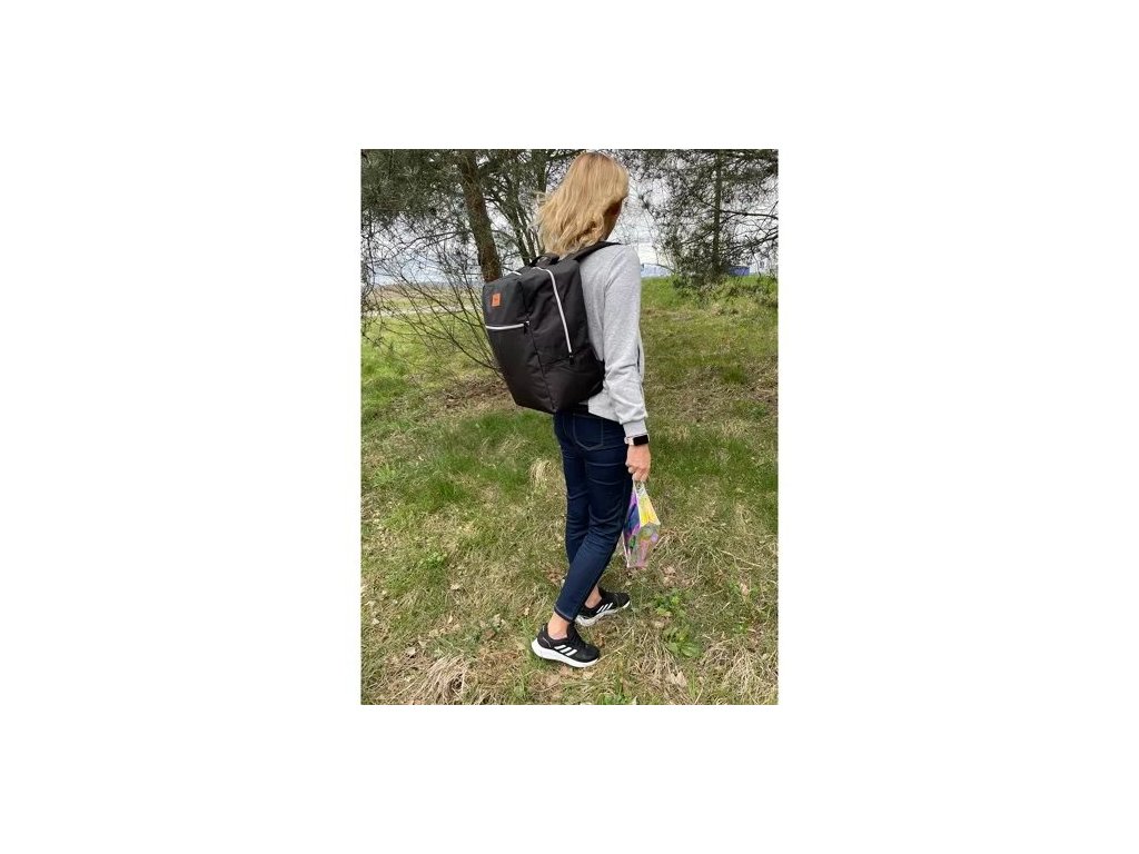 SPECIFIKACE - materiál: polyester, ostatní: PVC + PU + EPE pěna + kosmetická taštička: materiál: PVC, ostatní: nylon + železo; barva: černá; vodotěsnost: ano; objem: 17 l; rozměry kosmetické taštičky: 15,5 x 23 x 6 cm; rozměry batohu: 38 x 24 x 18 cm; délka ramenního popruhu: 78 cm; hmotnost: 500 g; hmotnost v balení: 550 g.