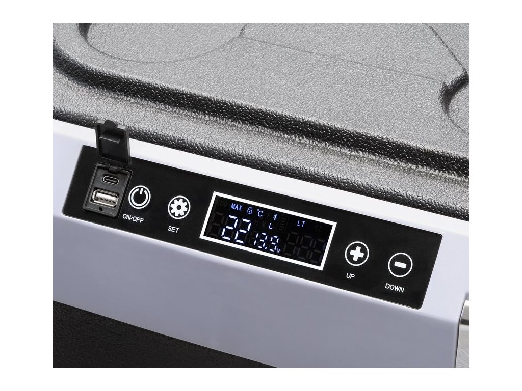 Intuitivní LED displej a dotykový ovládací panel umožňují přesné nastavení teploty a provozního režimu. Panel je vybaven automatickým zámkem, režimem Eco a ochranou proti vybití baterie vozidla. Ovládání je jednoduché, rychlé a moderní, což umožňuje každému uživateli snadno ovládat funkce chladničky.