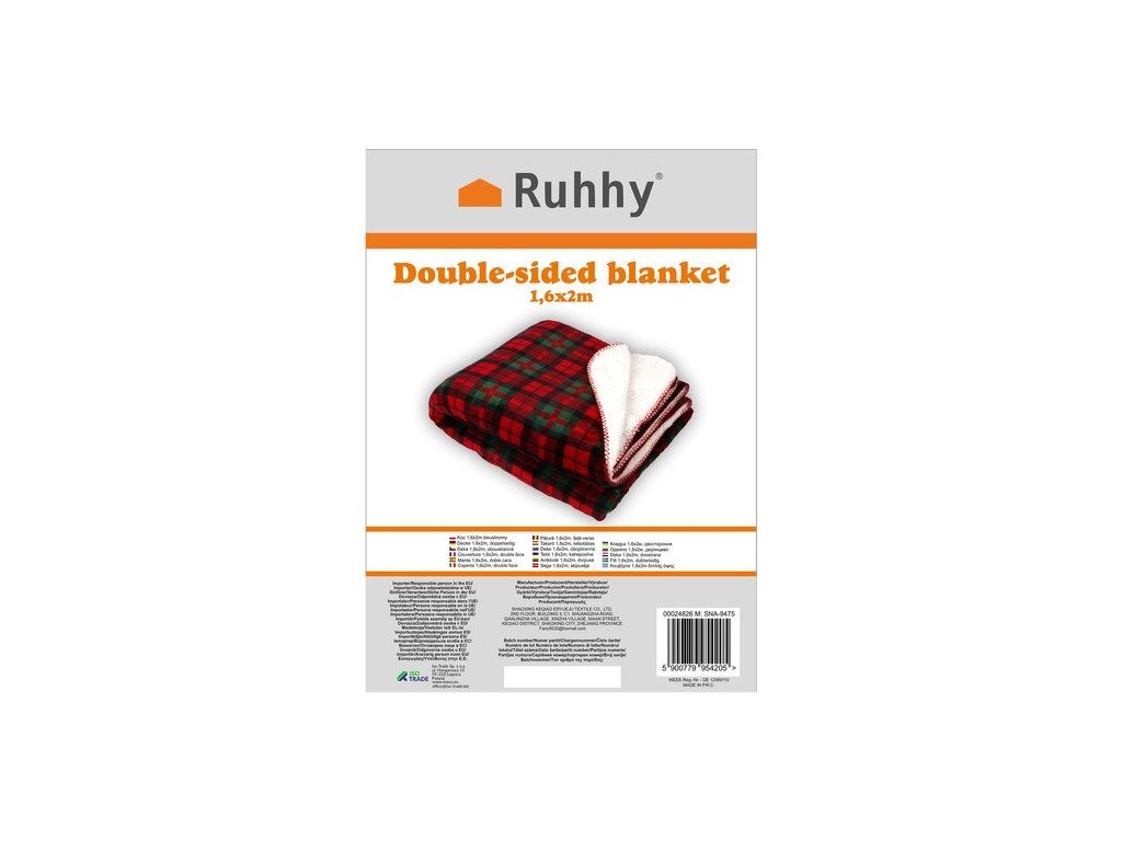 Deka oboustranná, mikrovlákno, 160x200cm, Ruhhy 24826 károvaná zelená - červená