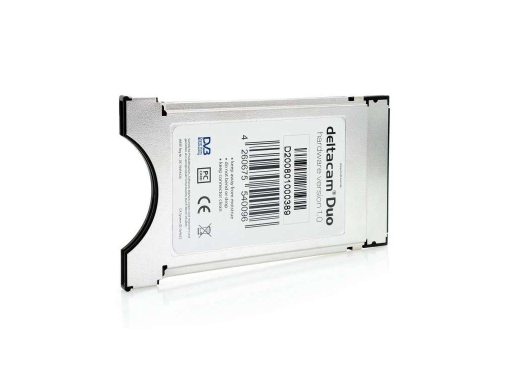 DeltaCAM DUO REV 2.0 Deltacrypt CI je vícesystémový CAM modul kompatibilní s mnoha šifrovacími systémy, včetně Viaccess, Conax, Irdeto, Cryptoworks, MediaGuard (Seca / Aston), Nagravision a BISS. Je kompatibilní s multiplatformními operátory, jako jsou Canal Digitaal NL, TV Vlaanderen, ORF, HD +, Telesat, DigiTurk, tivusat.