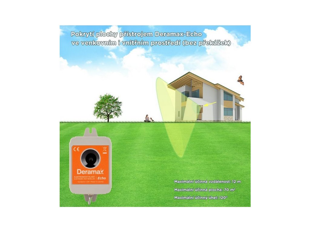 Plašič Deramax-Echo slouží k ochraně vnitřních i venkovních prostorů před netopýry. Přístroj je pro člověka zcela bezpečný a bezhlučný. Škůdci jsou trvale obtěžováni ultrazvukovými signály plašiče a v krátkém čase opouští chráněný prostor. Provoz přístroje je ekologický, bez využití chemických prostředků.