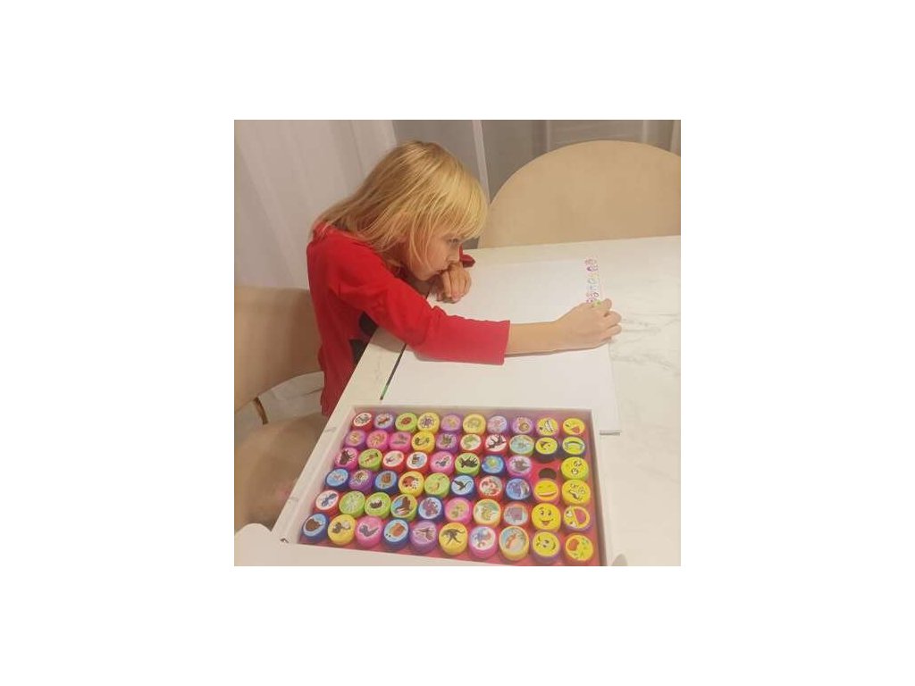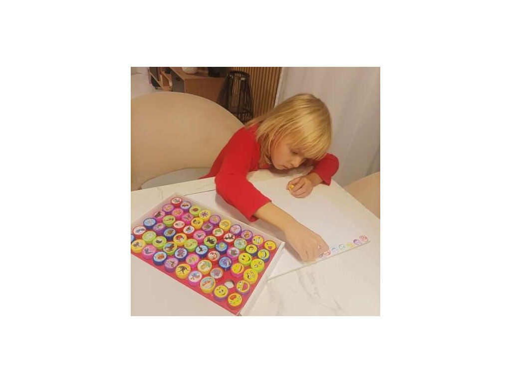 Bezpečnost je pro nás na prvním místě. Inkoust na razítkách je bezpečný pro děti, takže se nemusíte obávat vyrážek nebo alergií při kontaktu s pokožkou. Navíc, pouzdra razítek nemají ostré hrany, což zajišťuje další úroveň ochrany pro vaše malé umělce.