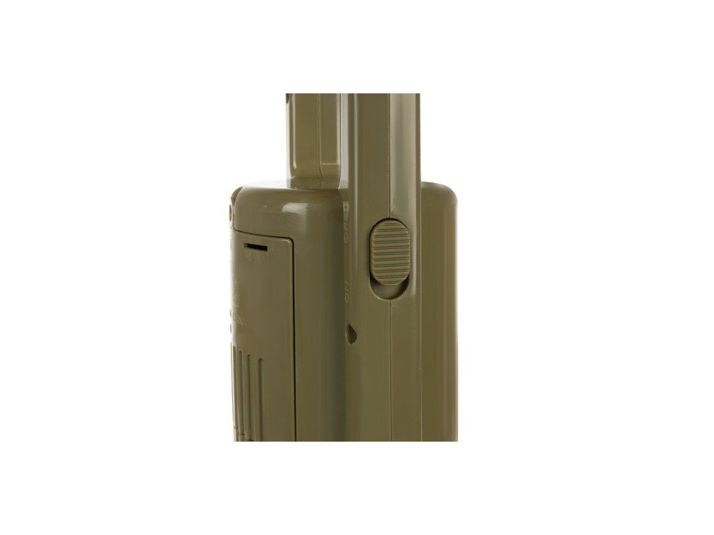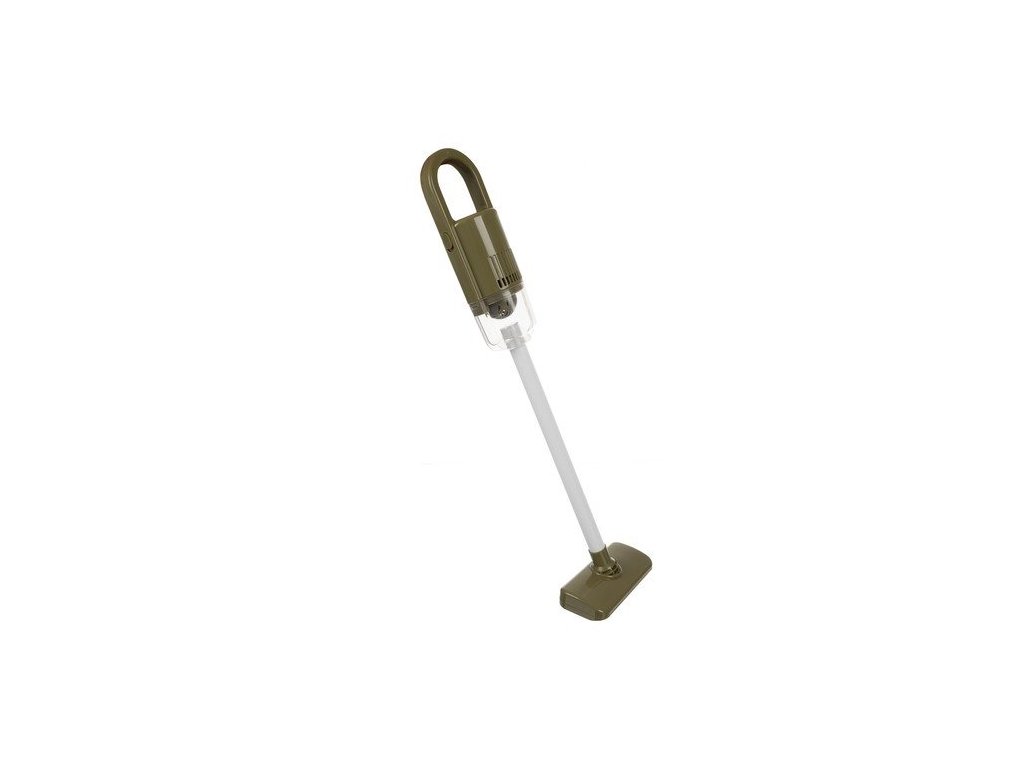 - Funkční vertikální vysavač napájený 3 AA bateriemi, s dvěma hubicemi pro různé povrchy.