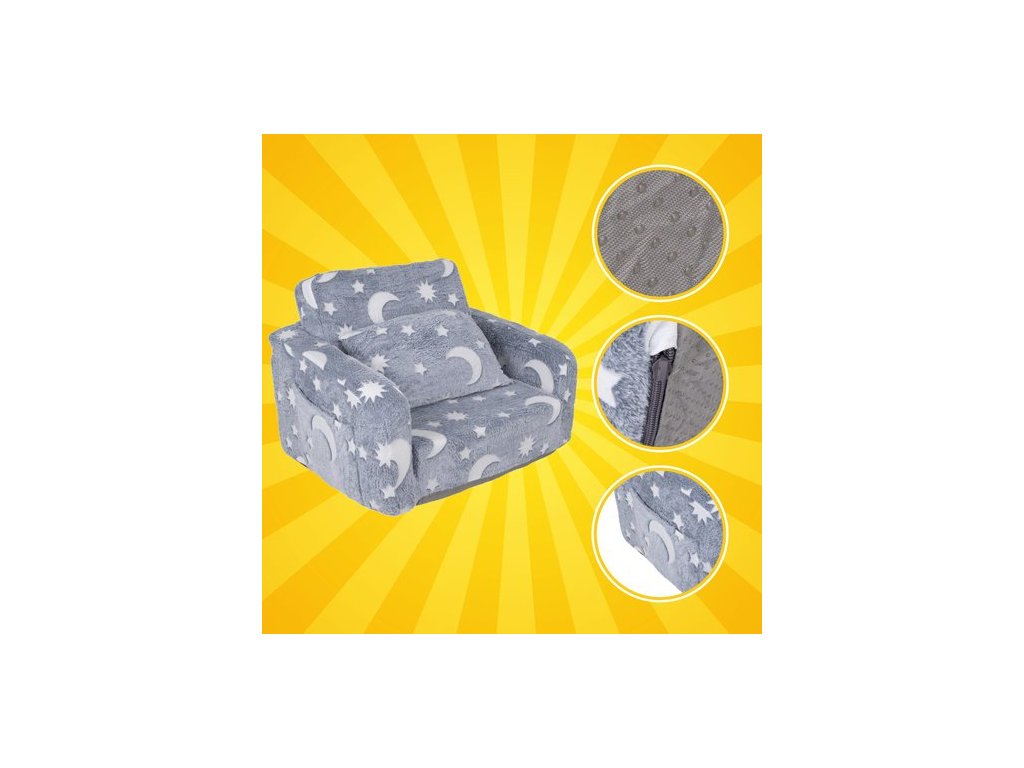Dětské polohovací křeslo je ideálním místem pro odpočinek, čtení i hraní. Je vyrobeno z měkkého a příjemného plyše, který poskytuje maximální pohodlí a teplo. Díky funkci polohování lze křeslo snadno rozložit na pohodlné lehátko – ideální pro relaxaci nebo krátký spánek.