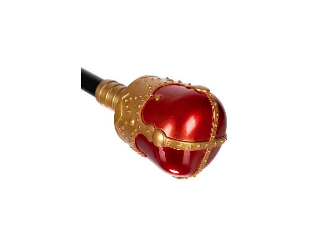Žezlo - je symbolem autority a moci, kterou drží králové, aby zdůraznili jejich sílu a imperialitu. Vyrobeno z vysoce kvalitního plastu. Na krku žezla je ozdobný prvek, červený drahokam zdobený zlatým kováním. Držené žezlo dodává králově přestrojení auru autority a majestátnosti.