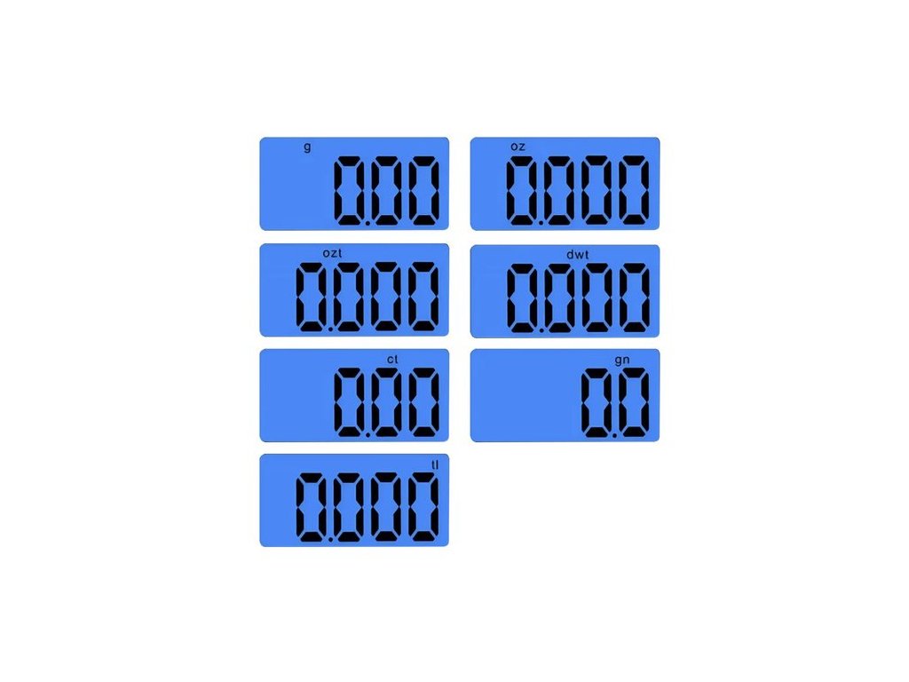 - Váhové jednotky: g, oz, ct, gn, tl, ozt, dwt