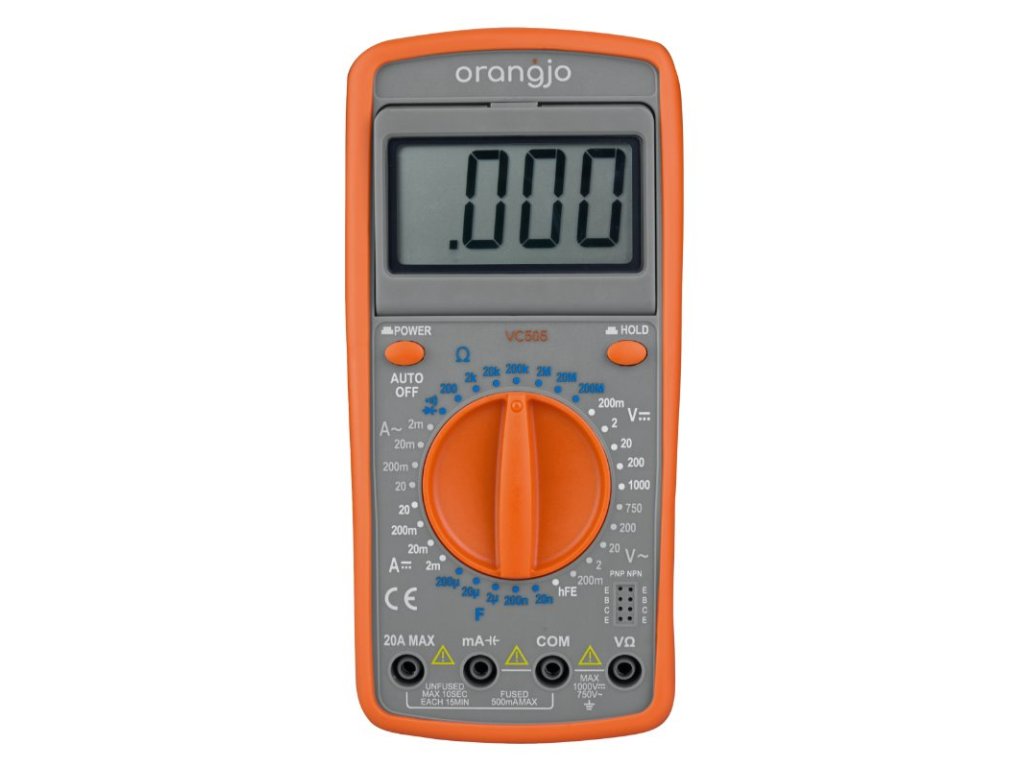 Digitální multimetr Orangjo VC505 s LCD displejem a akustickým alarmem je ideálním pomocníkem pro měření AC/DC napětí, proudu a odporu. S výkonem až 1000V DC a 750V AC splní všechny vaše technické požadavky.