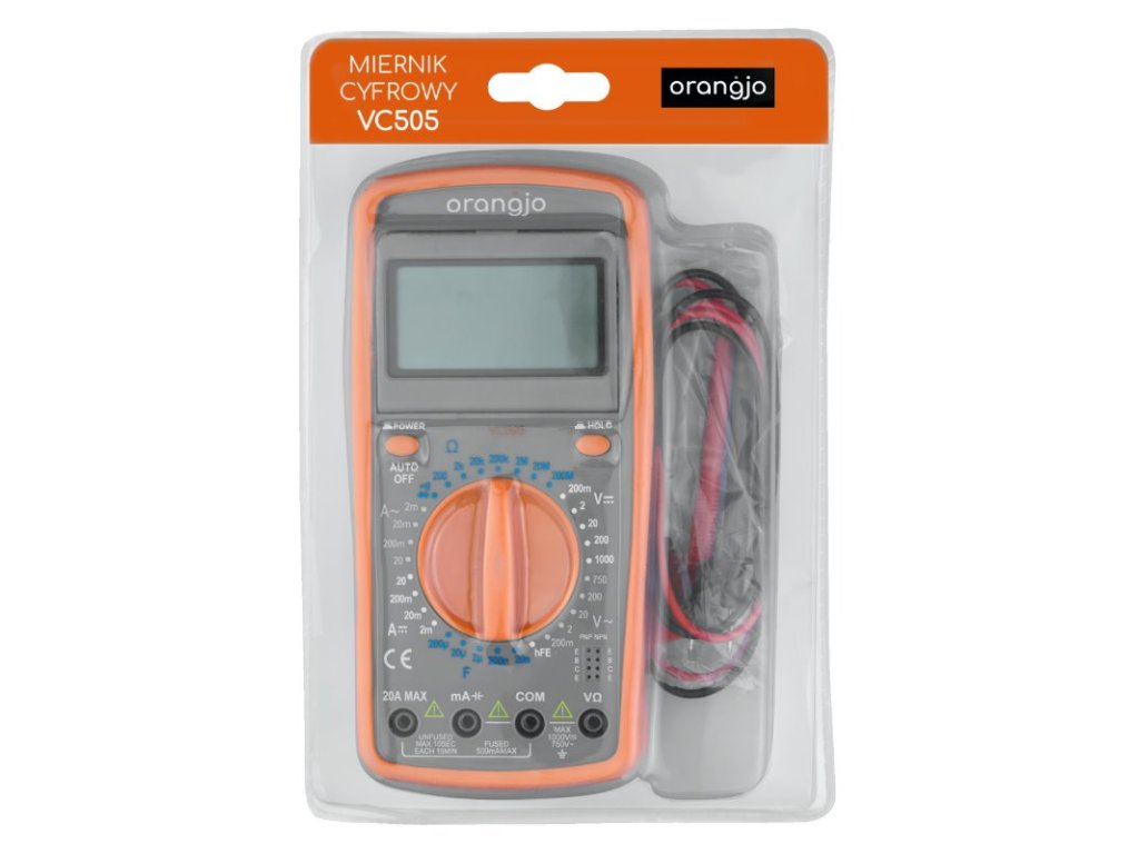 Univerzální digitální multimetr Orangjo VC505 je skvělým nástrojem pro každého, kdo potřebuje přesné a spolehlivé měření elektrických hodnot. Je ideální pro profesionální elektrikáře, kutily i studenty technických oborů. Tento přístroj nabízí širokou škálu funkcí, které zahrnují měření AC a DC napětí, AC a DC proudu, odporu, kapacity kondenzátorů, test hFE tranzistorů, test diod a test kontinuity s akustickým alarmem. S napájením na 2x AAA baterie a kompaktními rozměry je velmi snadno přenosný a použitelný v různých podmínkách.