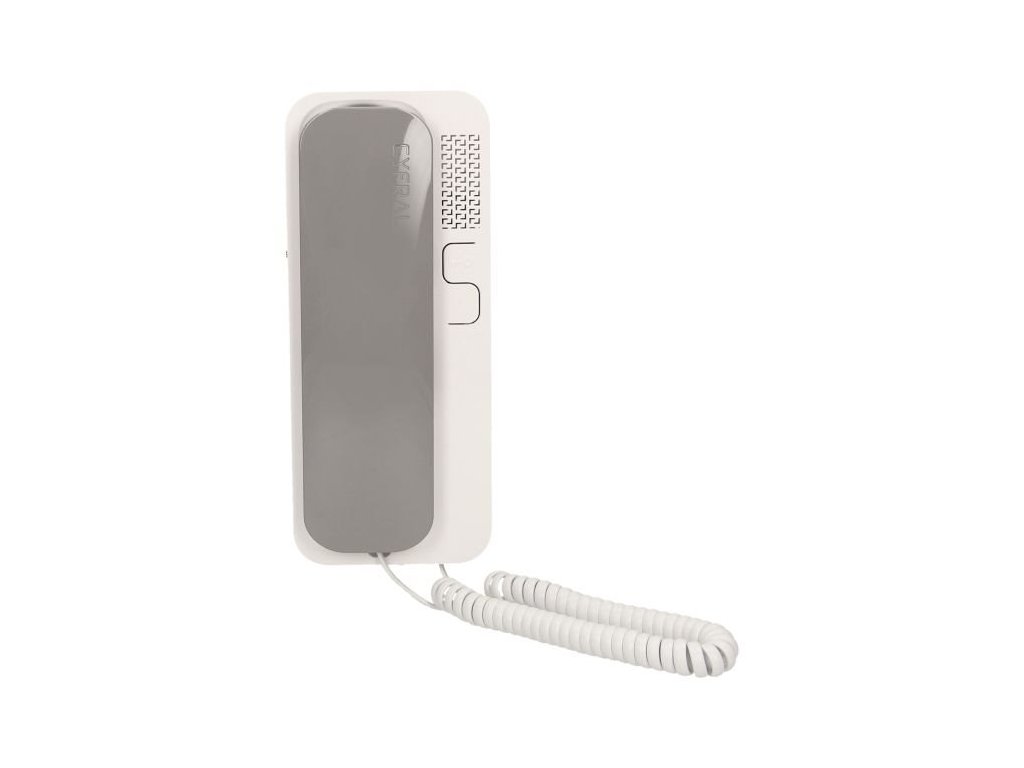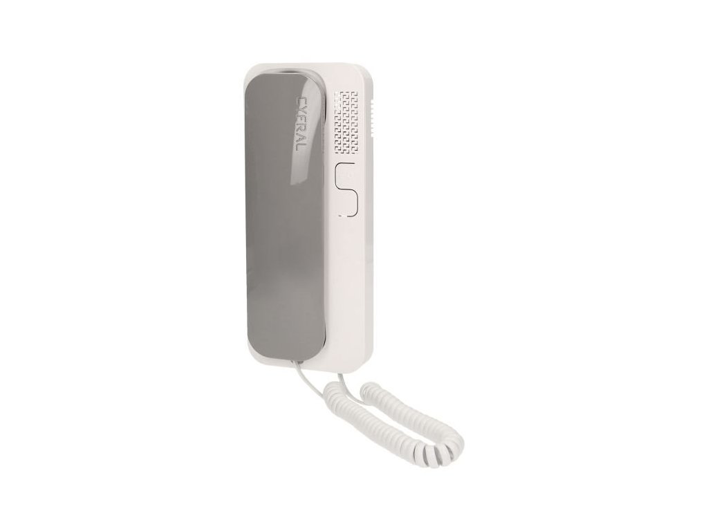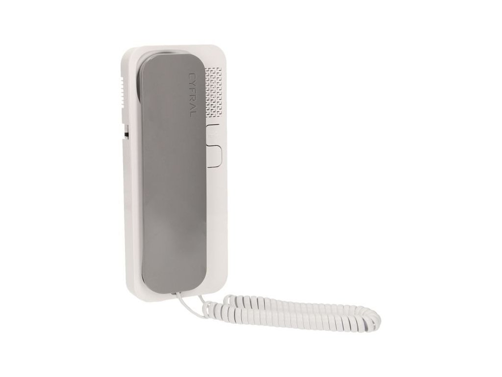 Domovní telefon CYFRAL SMART-D v elegantní kombinaci bílá-šedá přináší komfortní komunikaci s 3 stupni nastavení hlasitosti a ochranou proti odposlechu.