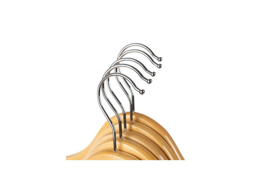 VÝJIMEČNÁ KVALITA A ODOLNOST Sada 10 dřevěných ramínek na šaty je synonymem elegance a odolnosti, ideální pro každého, kdo si ve svém šatníku cení vysoce kvalitního zpracování. Každý věšák v sadě je vyroben z masivního dřeva, které se vyznačuje vysokou odolností a přirozenou krásou. Dřevo je pečlivě pokryto bezbarvým lakem, který materiál nejen chrání před vlhkostí, poškrábáním a jiným poškozením, ale zároveň zvýrazní jeho přirozenou barvu. Díky tomu věšáky plní nejen svou praktickou funkci, ale dodají prvek elegance do každé šatny či šatny.
