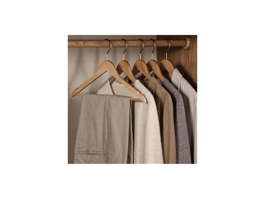 Elegantní a funkční sada 10 dřevěných věšáků spojuje estetiku s praktičností. Věšáky vyrobené z kvalitního masivního dřeva, opatřené bezbarvým lakem, dodají každému interiéru nejen eleganci, ale zajistí i vynikající odolnost a dlouhodobé používání.