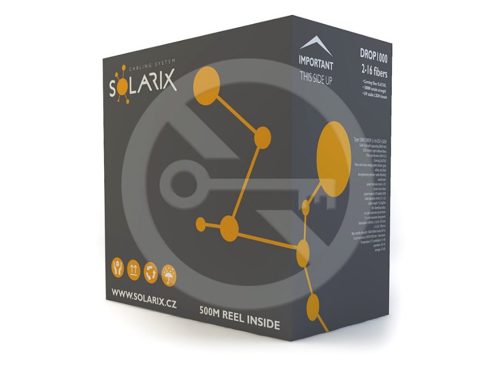 DROP1000 kabel Solarix 12vl 9/125 3,8mm LSOH Eca černý 500m zajišťuje vysokou přenosovou kapacitu a nízký útlum pro efektivní datové toky. S odolností 1000 N je ideální pro vnitřní i venkovní instalace.