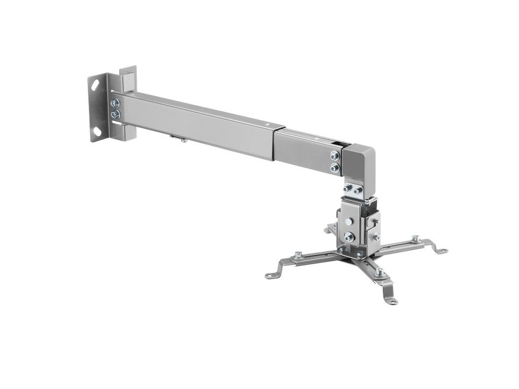 Univerzální držák na projektor pro zavěšení na stěnu. Držák je délkově nastavitelný, otočný do stran, náklopný, s korekcí roviny. Systém pro skryté vedení kabeláže. Velmi kvalitní držák na projektory z masivní ocely.