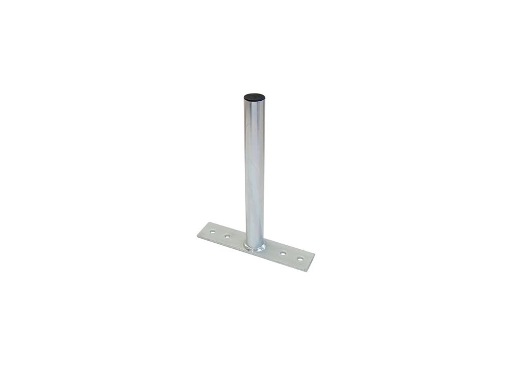 Patka pro upevnění stožáru o průměru 48 mm s jedním zajišťovacím šroubem a krátkým pásem (130x60 mm) se dvěma otvory o průměru 11 mm pro šrouby ke kotvení do podlahy....