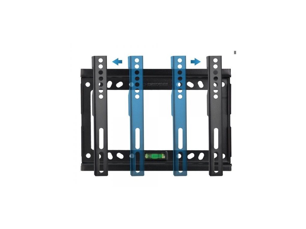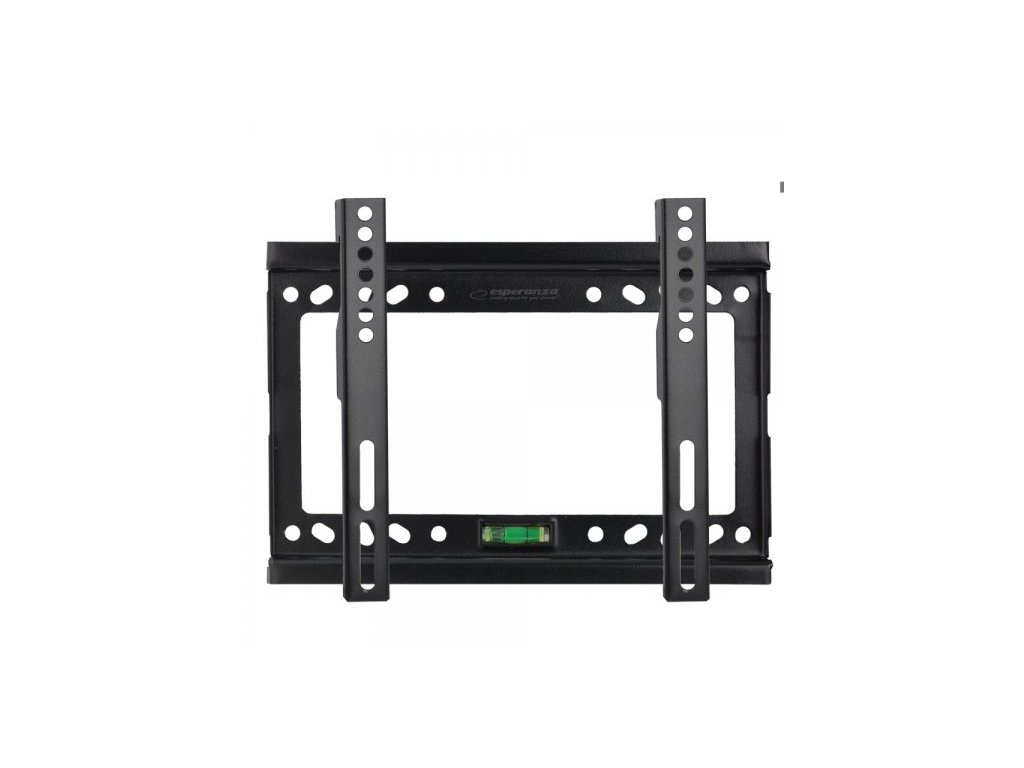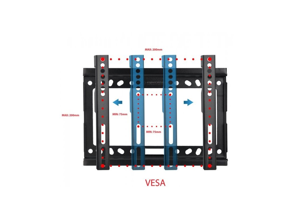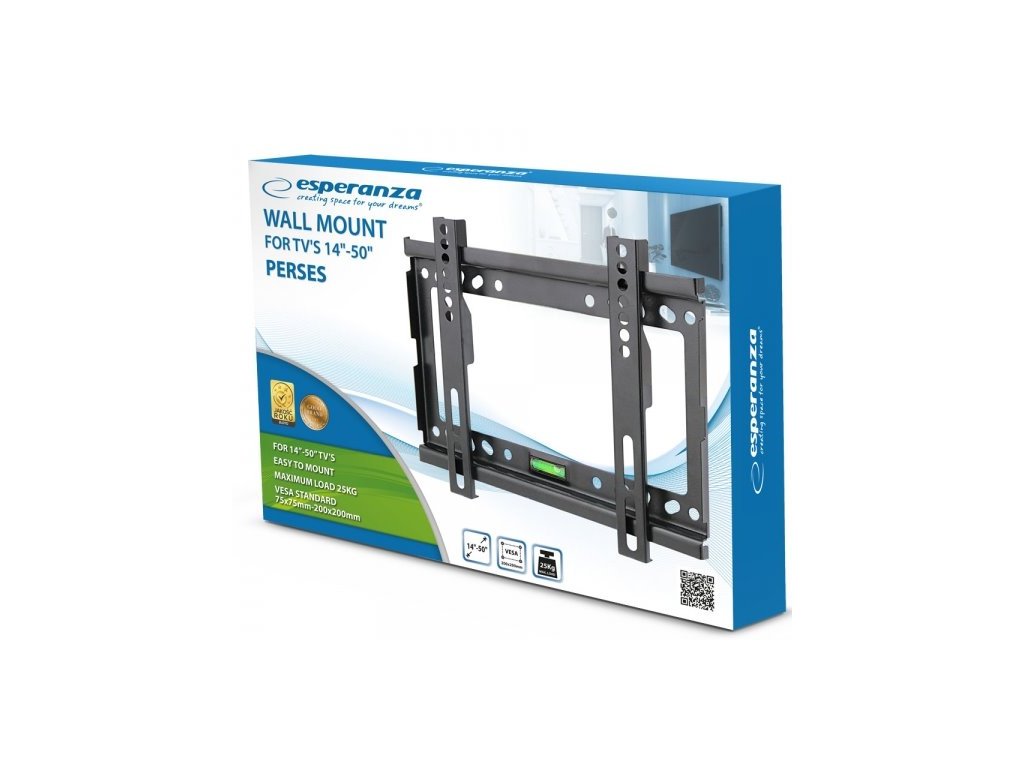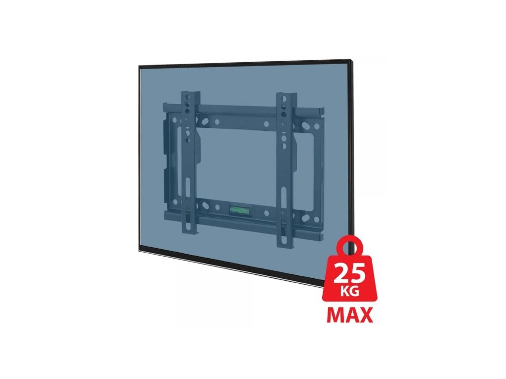 Kovový, pevný nástěnný držák pro TV od 14" do 50". Snadné sestavení. Vyhovuje standardu VESA 75x75 - 200x200. V sadě má malou vodováhu, která pomáhá vyrovnat rukojeť.