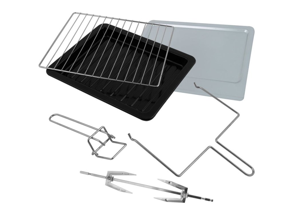 Příslušenství: plech na pizzu, grilovací rošt, chňapka na hrnce, sada na rožeň