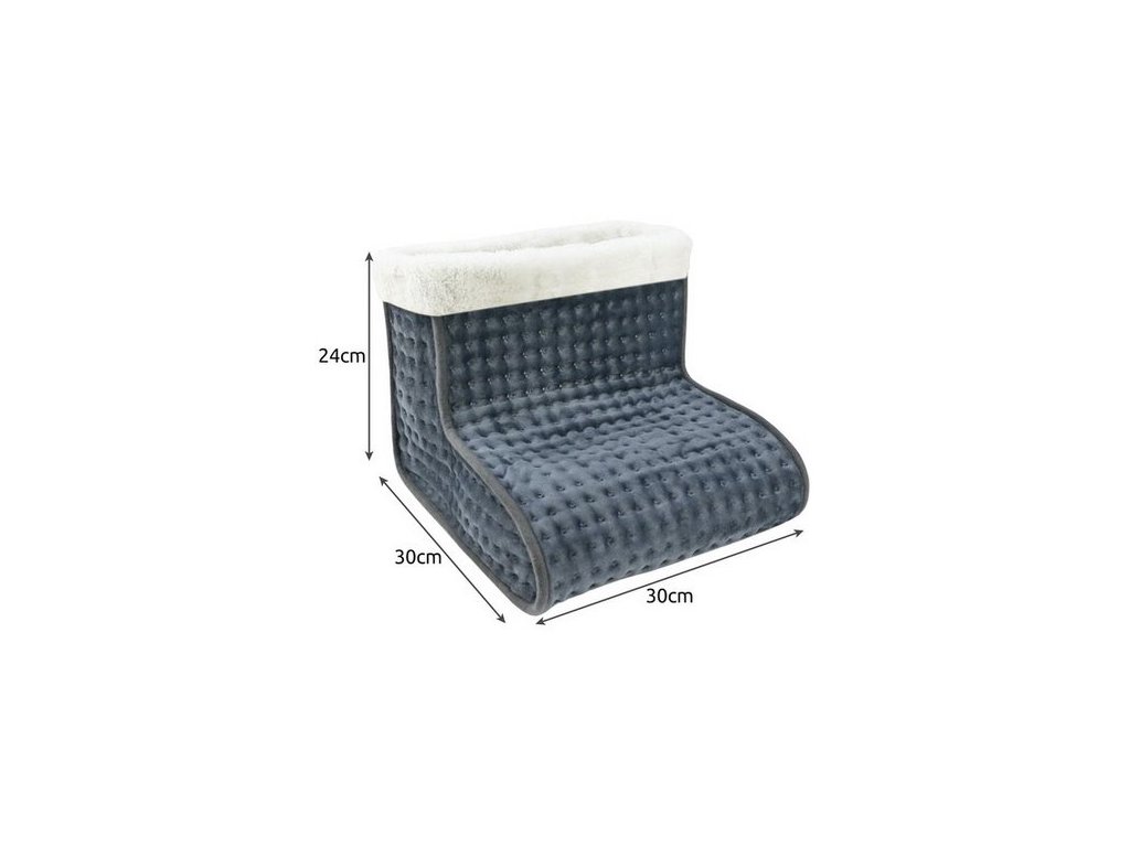 SPECIFIKACE - barva: šedá; materiál: plast, fleece; počet režimů: 3; počet úrovní výkonu: 3 (45/55/65°C); výkon: 100 W; napětí: 220 – 240 V 50 Hz; rozměry: 30 x 30 x 24 cm; hmotnost: 660g; hmotnost v balení: 900g.