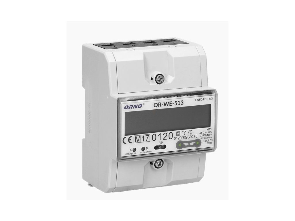 Elektroměr digitální na DIN lištu ORNO OR-WE-513 je ideální pro měření činného výkonu do 80A v třífázové soustavě. Díky LCD displeji s 6 + 2 číslicemi a přesnosti třídy B je dokonalým pomocníkem pro každého, kdo chce sledovat svou spotřebu energie.