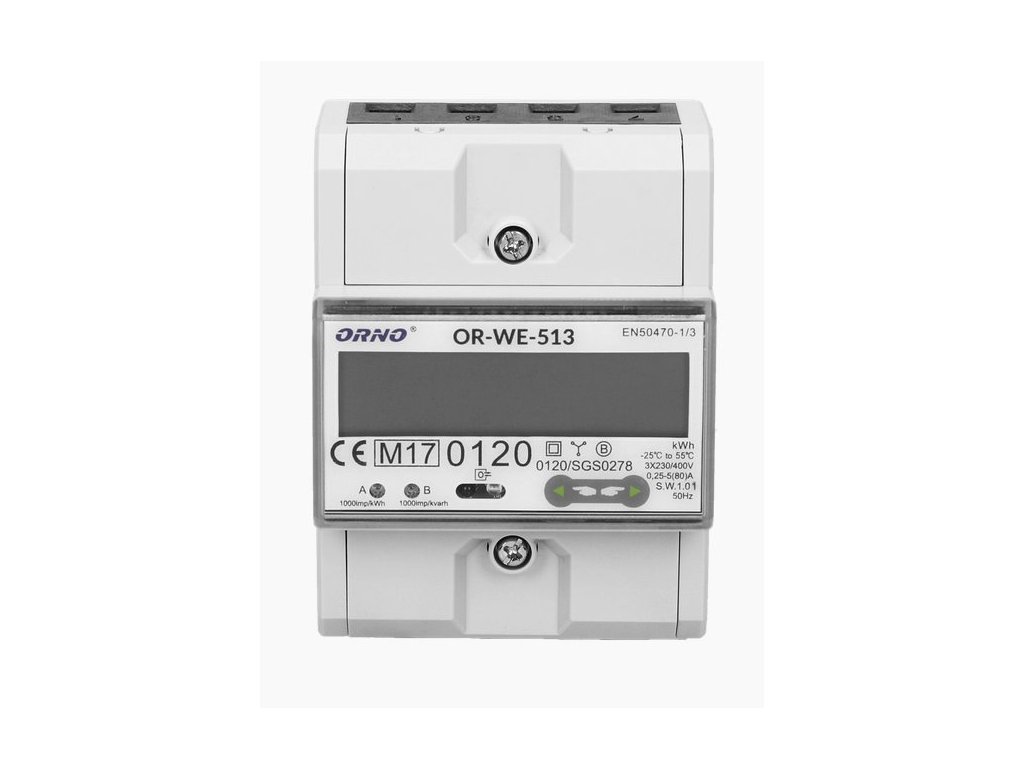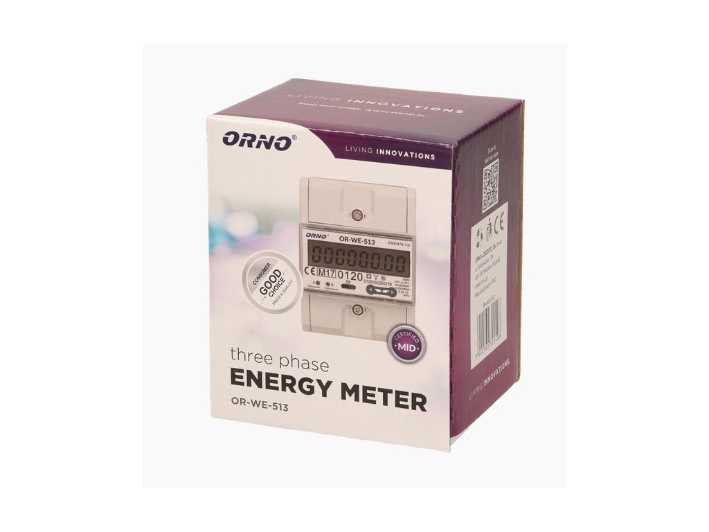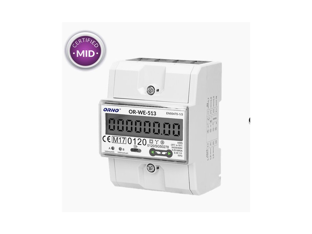 Elektroměr digitální na DIN lištu ORNO OR-WE-513, 80A, MID, třífázový, DIN TH-35mm