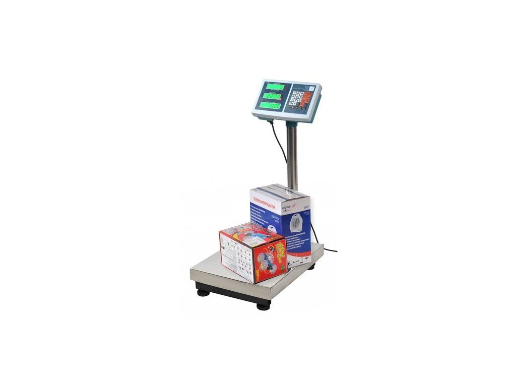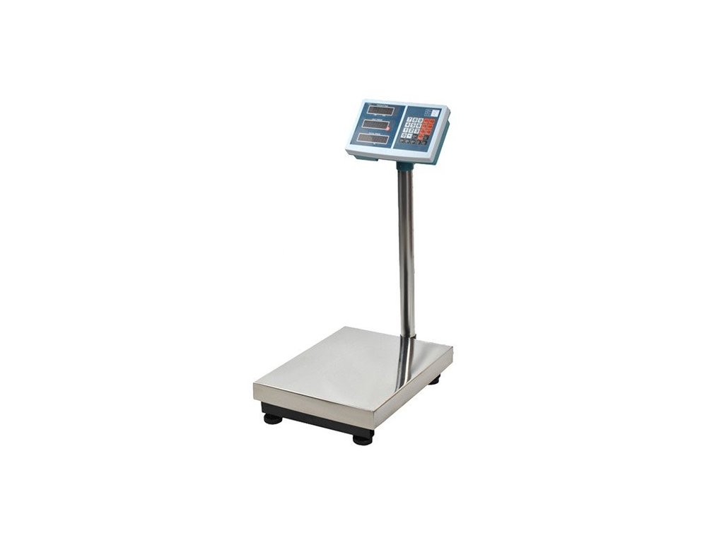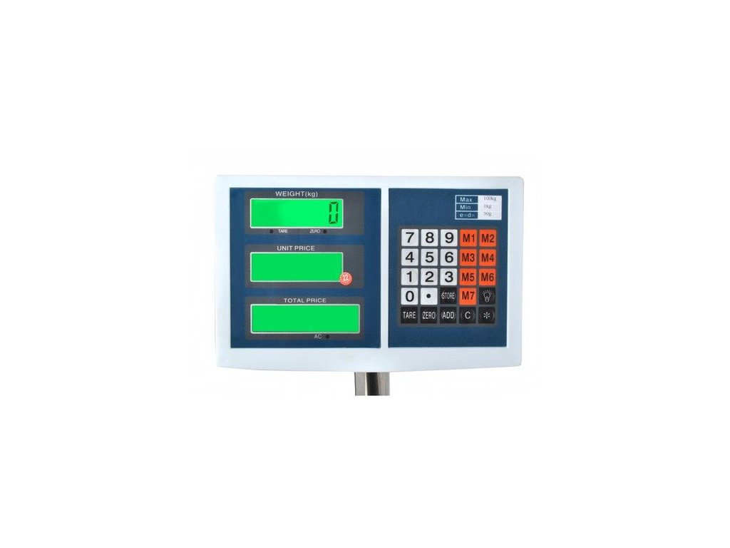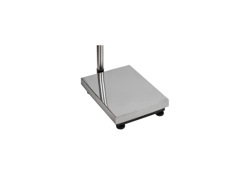 SPECIFIKACE - materiál: nerezová ocel, PVC; nastavení úrovně hmotnosti; funkce tárování; schopnost pracovat při teplotách: od -10 do 40 stupňů; rozsah vážení: do 100 kg; přesnost: 50 g; napájení: síť 220V a baterie (vestavěná: 4V/4Ah); rozměry: 65 x 30 x 40 cm; hmotnost: 4,5 kg; hmotnost balení: 5,5 kg.