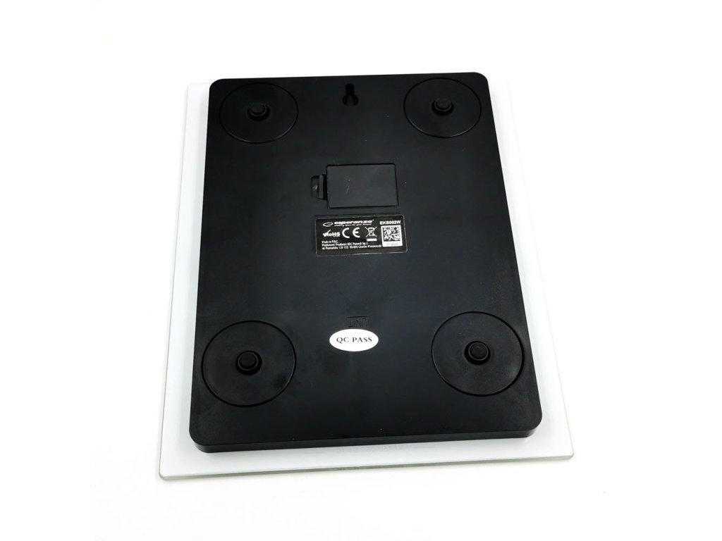 - Vážicí plocha z tvrzeného bílého skla o rozměrech 16,5 cm x 20,5 cm