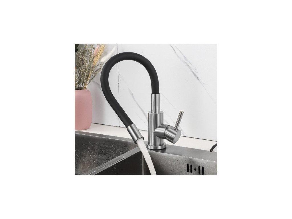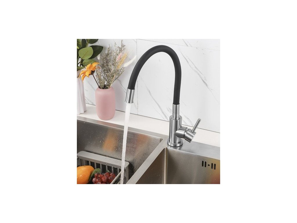 Flexibilní dřezová baterie nerez 360° stříbrnočerná Ruhhy 22821 nabízí maximální přizpůsobivost s otočným výtokem a moderním designem pro vaši kuchyň. Vyrobena z odolné nerezové oceli a silikonu, zaručuje dlouhou životnost a komfort při používání.