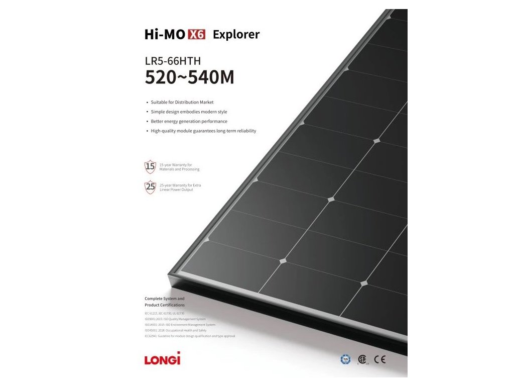 Vlastnosti fotovoltaického solárního panelu LONGI LR5-66HTH-530M